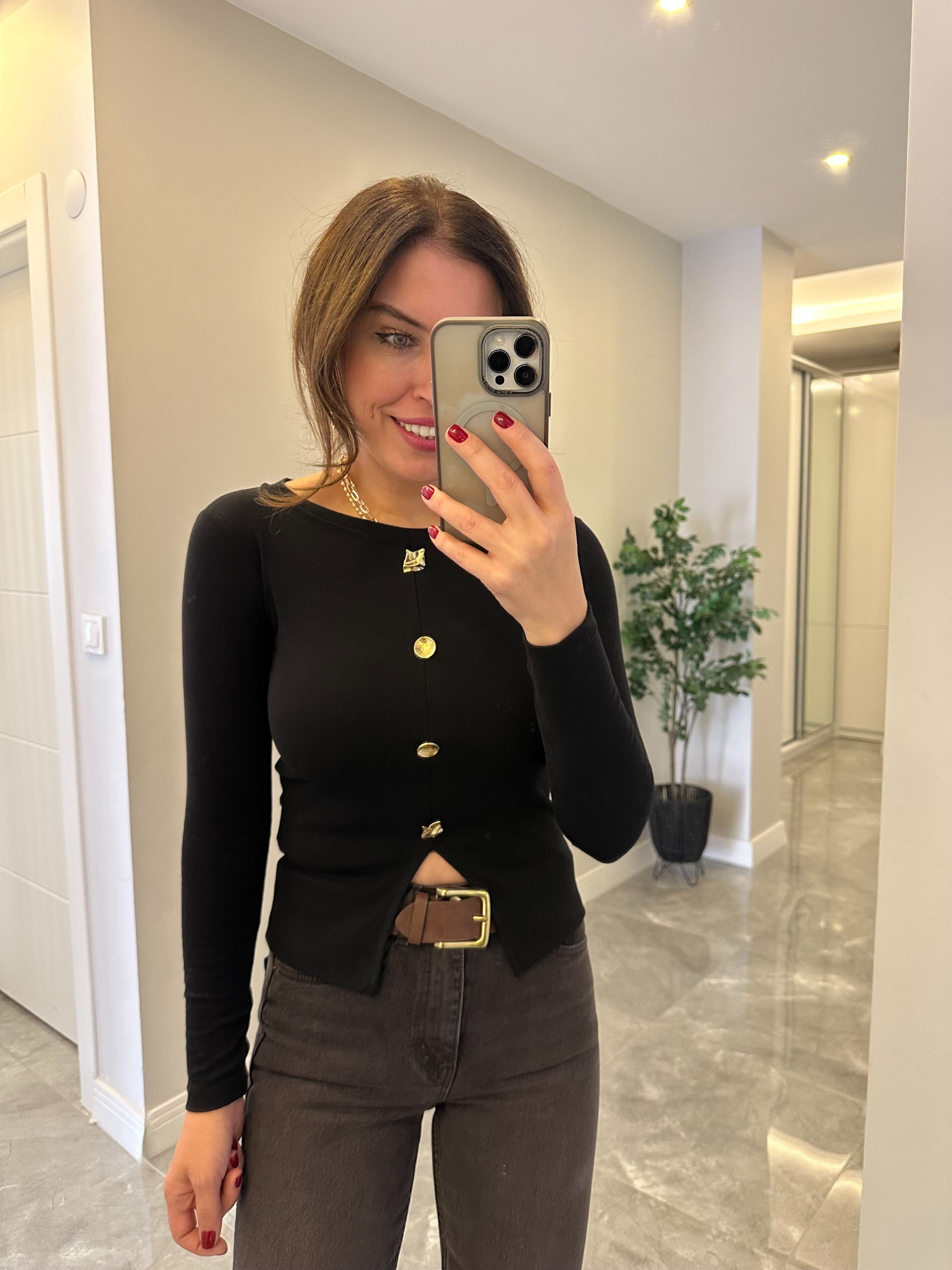 4 Düğmeli Basic Bluz - Siyah