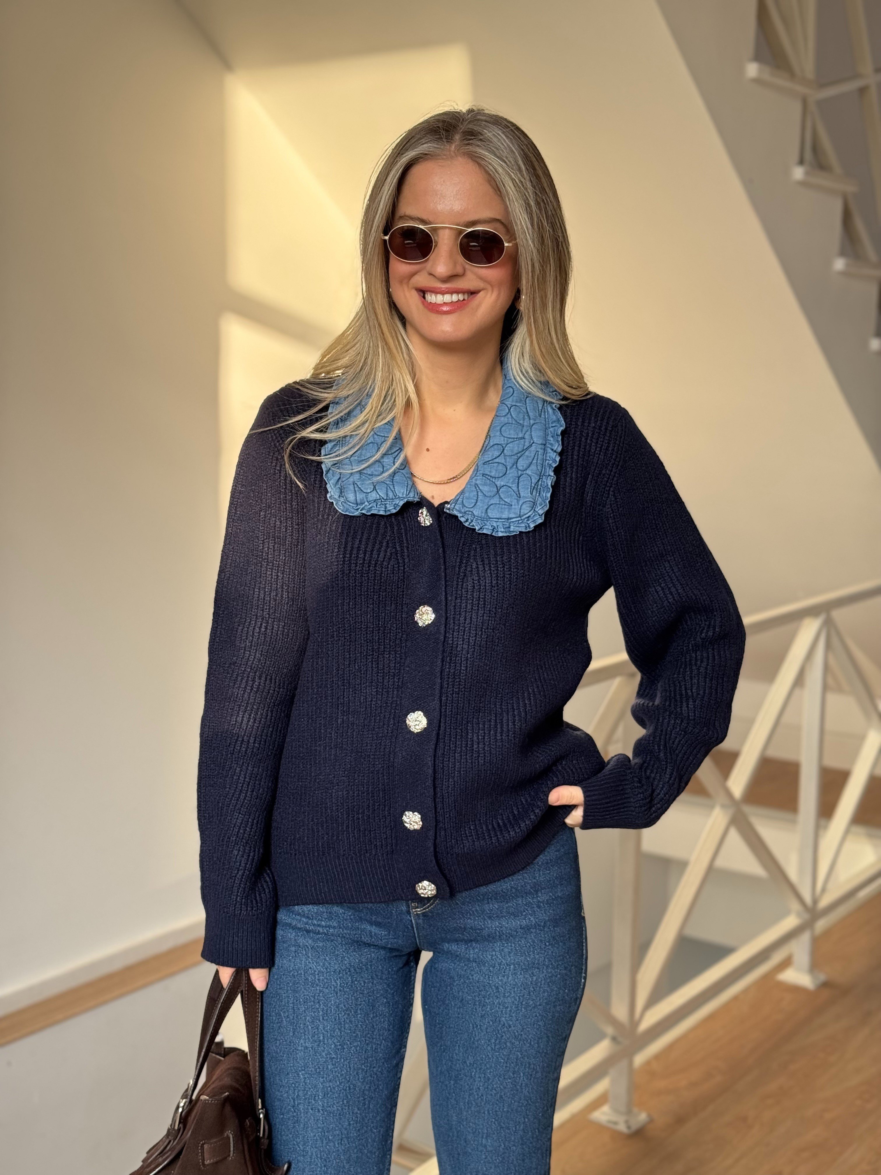 Bebe Yaka Garnili Triko Hırka - Lacivert