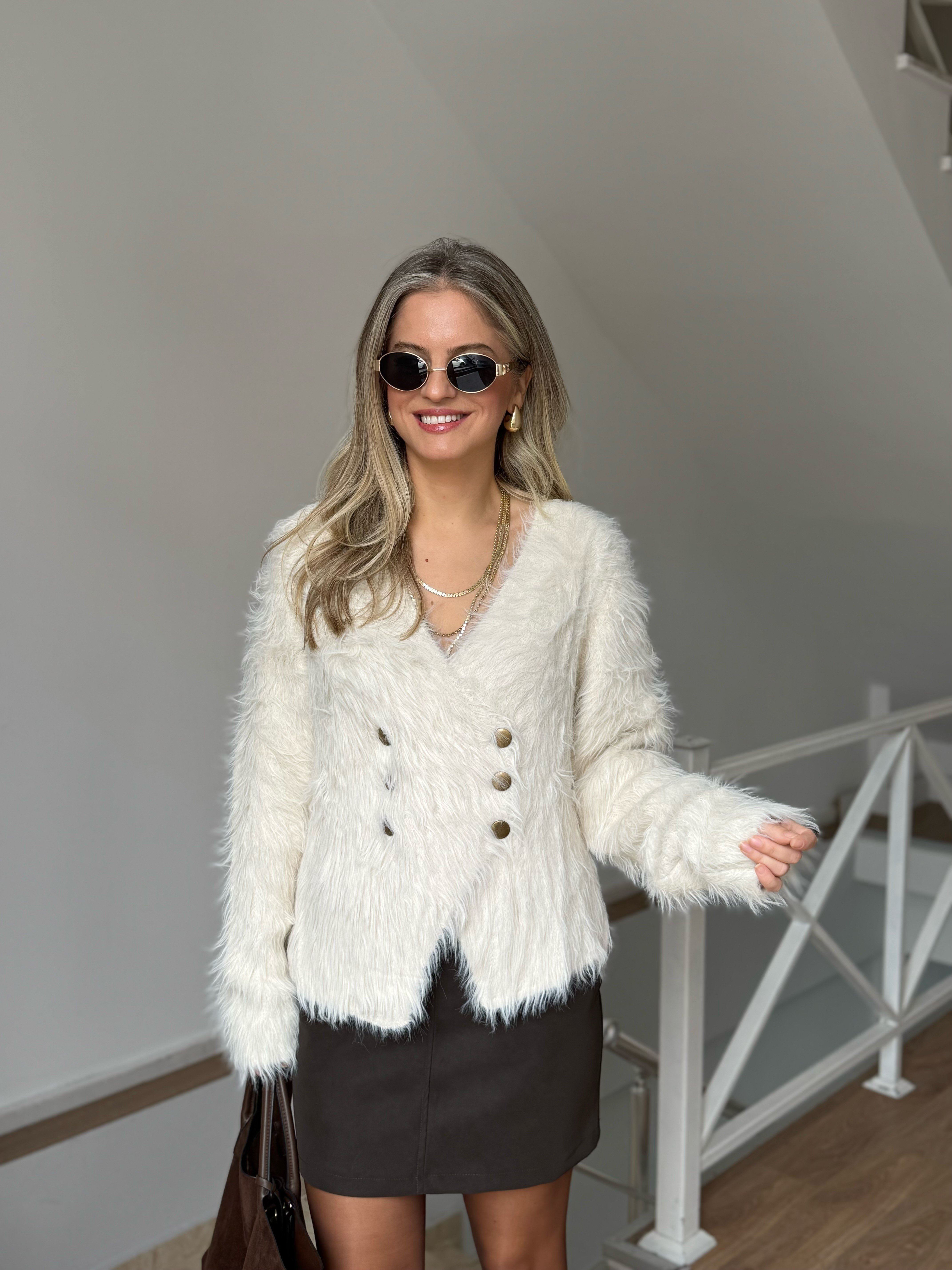 Çapraz Kapama Angora Tüylü Hırka - Ekru