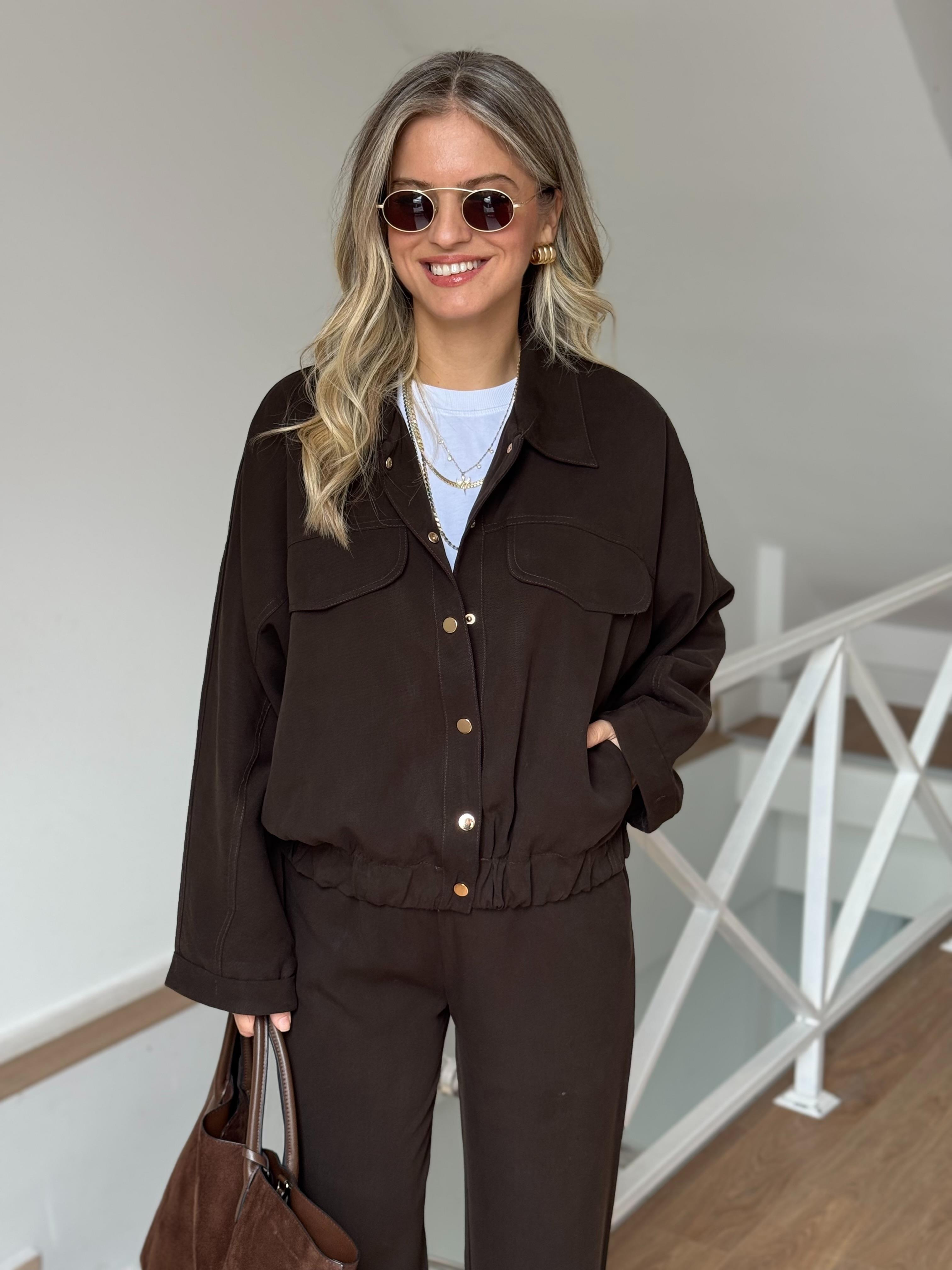 Çıtçıtlı Bomber Ceket Pantolon Takım - Kahverengi