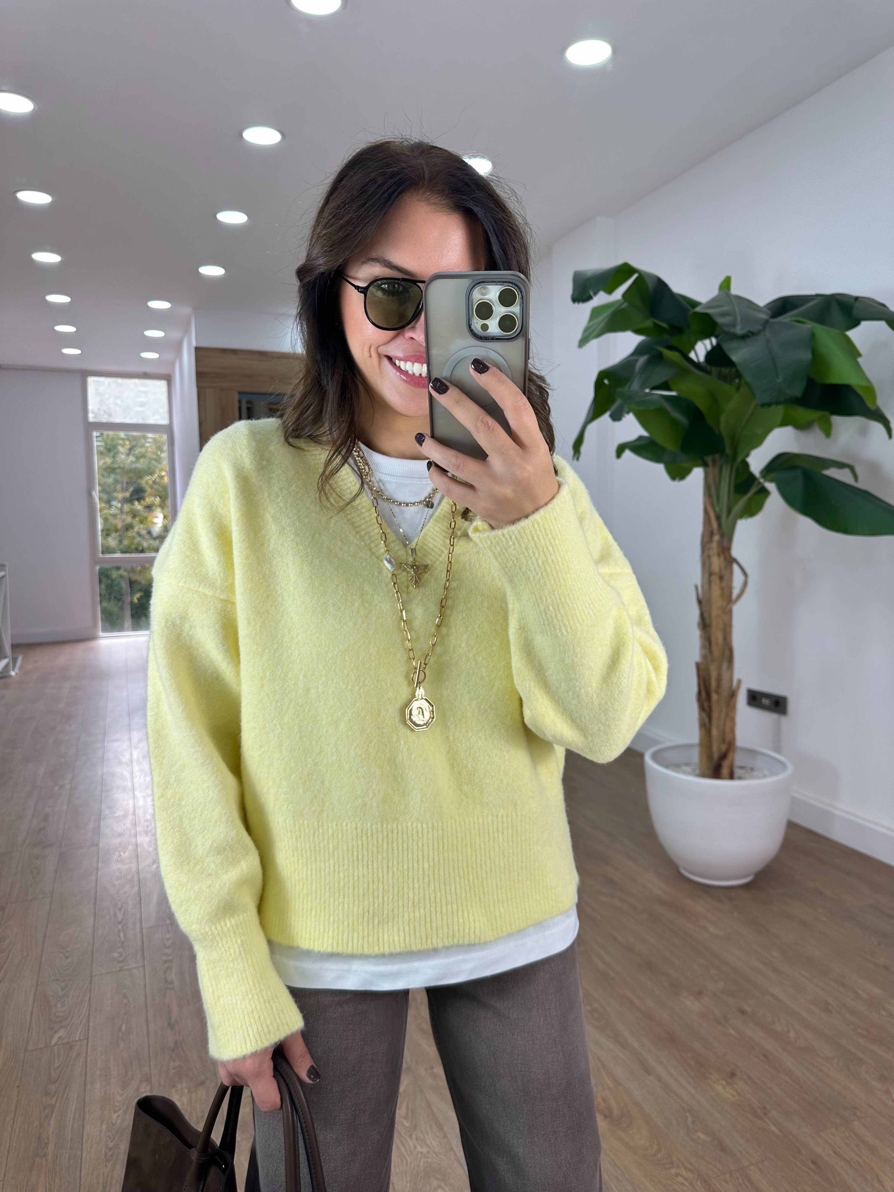 Dekoratif V Yaka Yumoş Kazak - Sarı