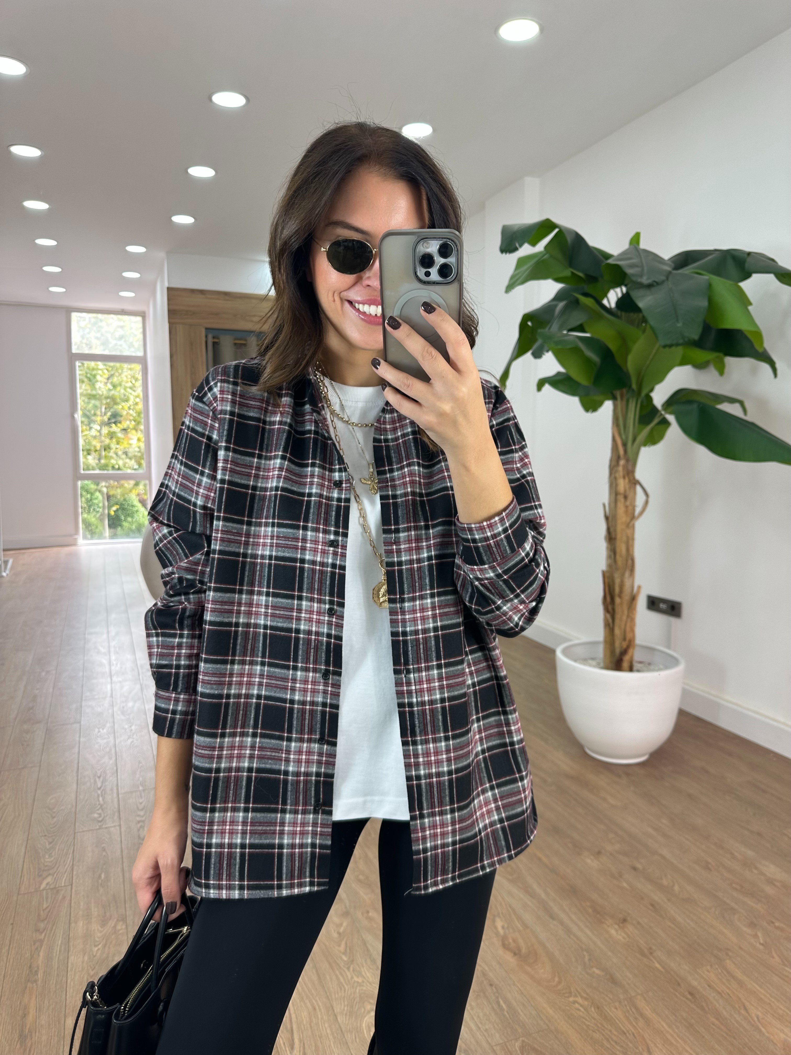 Ekoseli Oduncu Gömlek - Siyah Bordo
