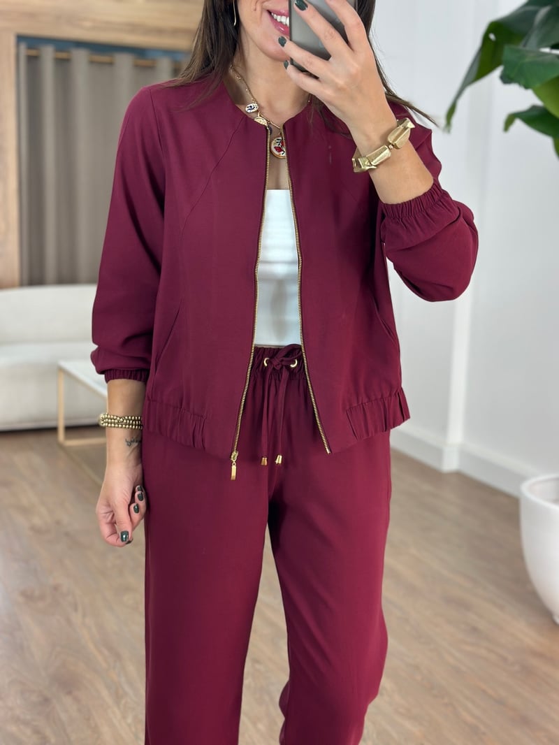 Fermuarlı Pantolon Ceket Takım - Bordo