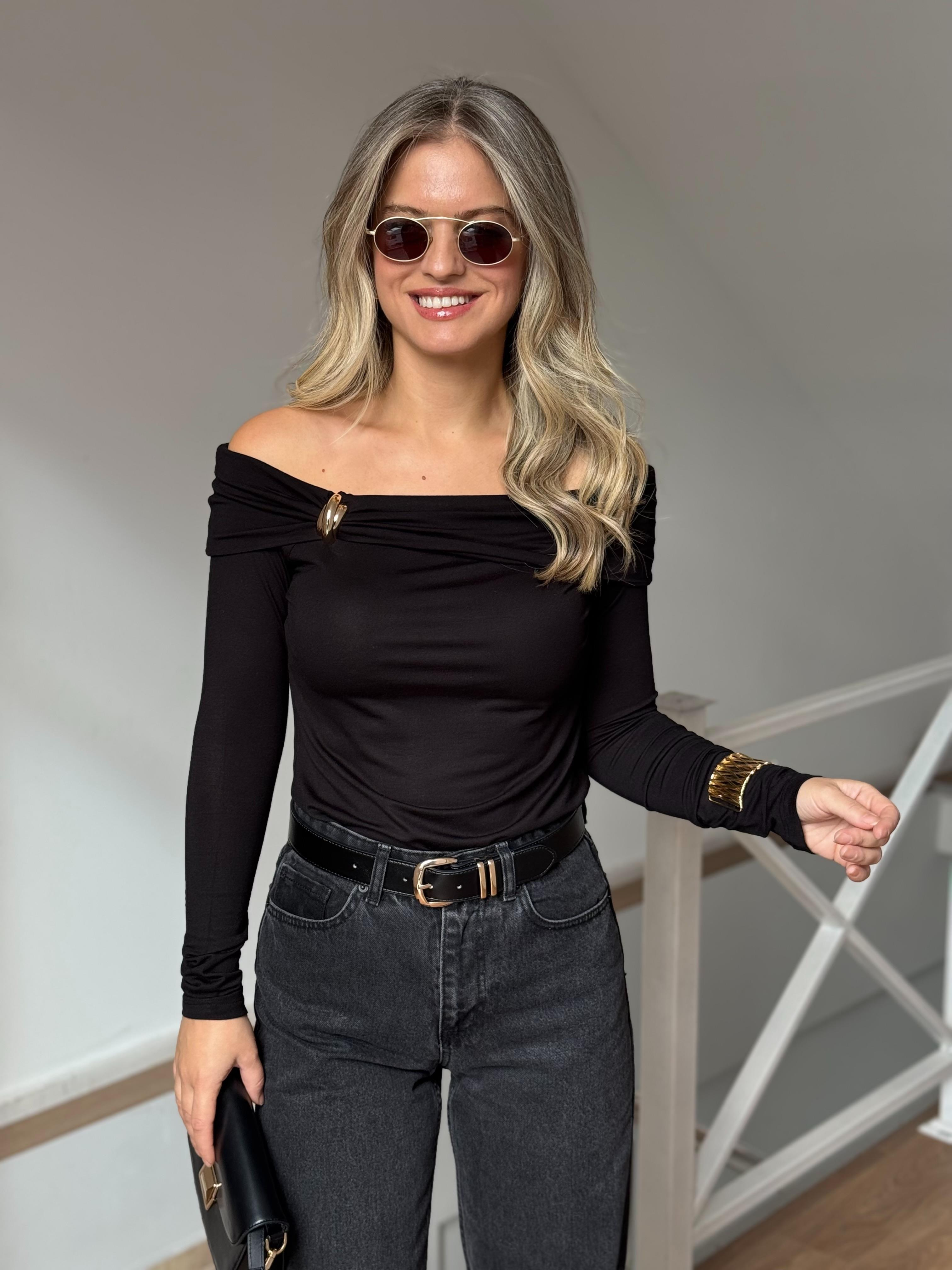 Madonna Yaka Toka Detaylı Bluz - Siyah