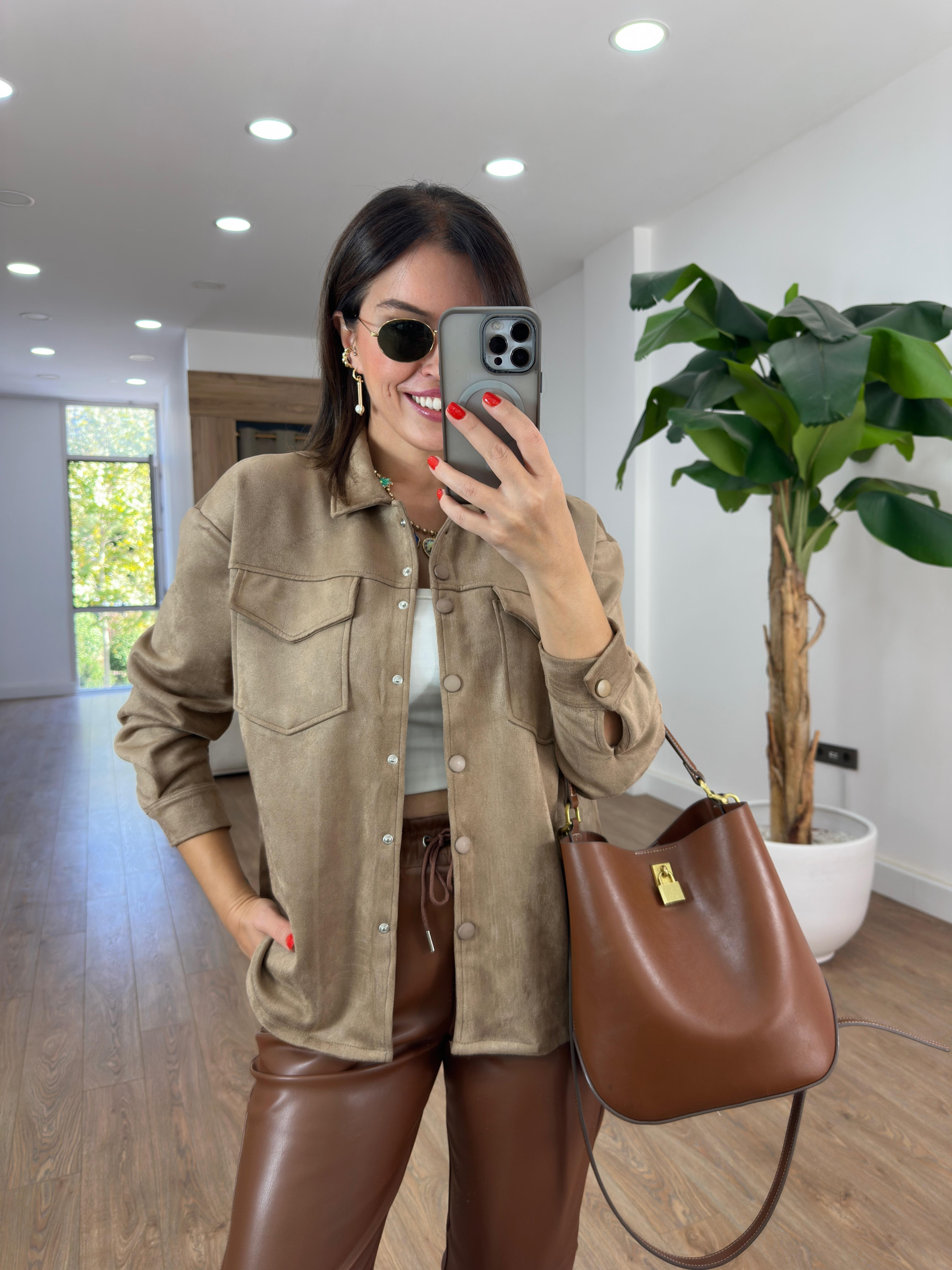 Orijinal Marka Çıtçıtlı Süet Gömlek - Bej (ÖN SİPARİŞTİR KARGOLAMA 13 EKİM )