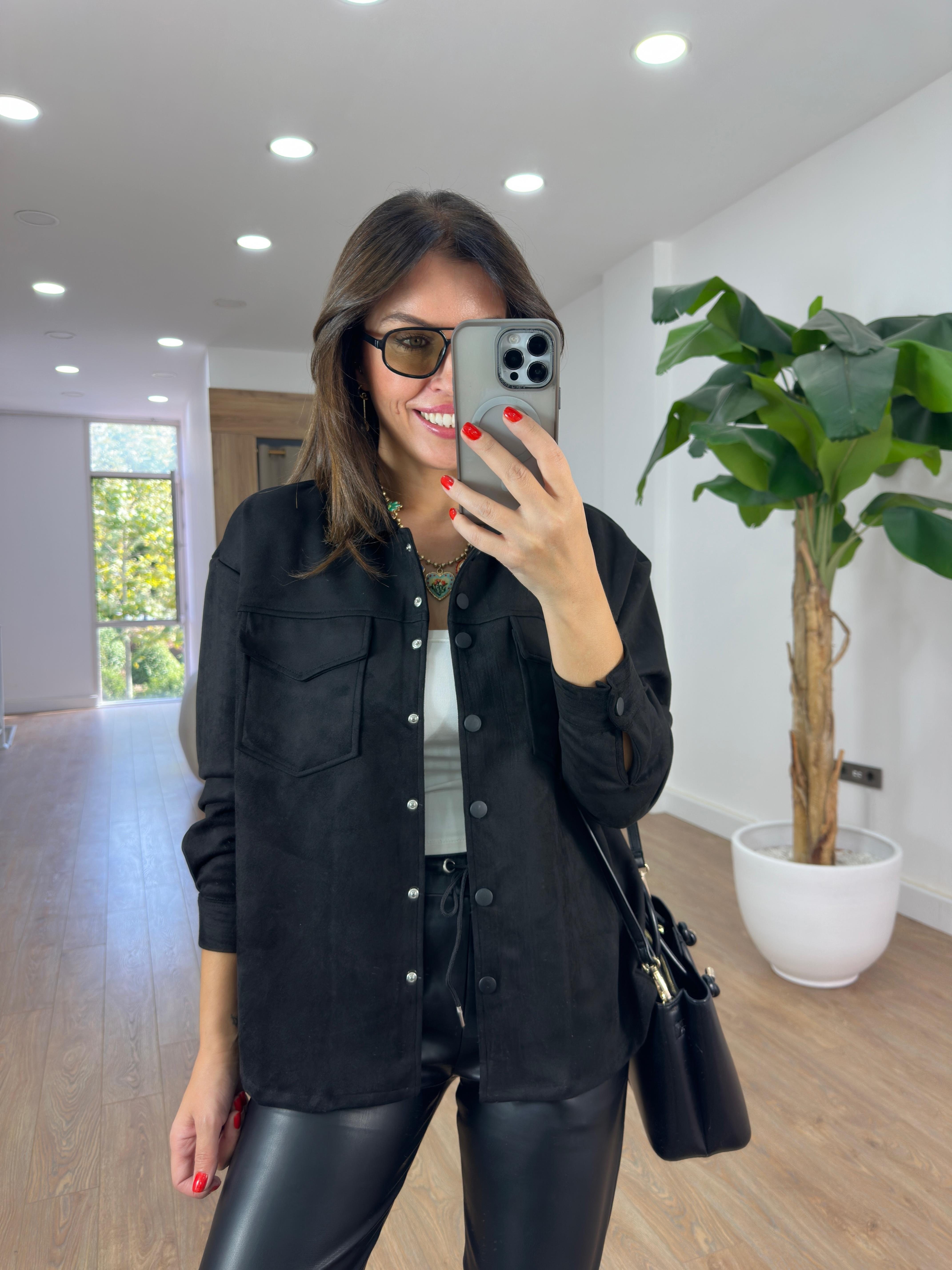 Orijinal Marka Çıtçıtlı Süet Gömlek - Siyah