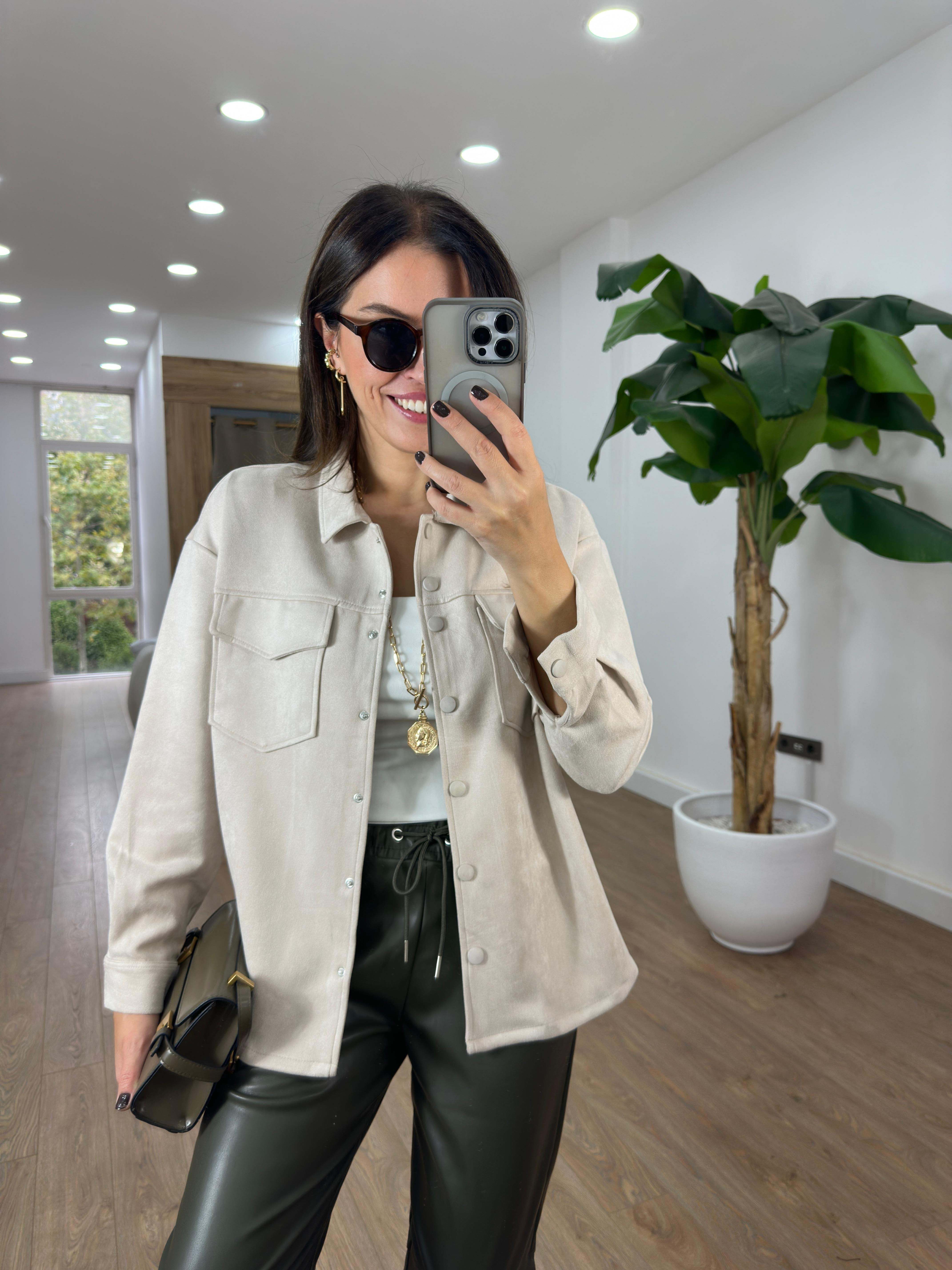 Orijinal Marka Çıtçıtlı Süet Gömlek - Taş