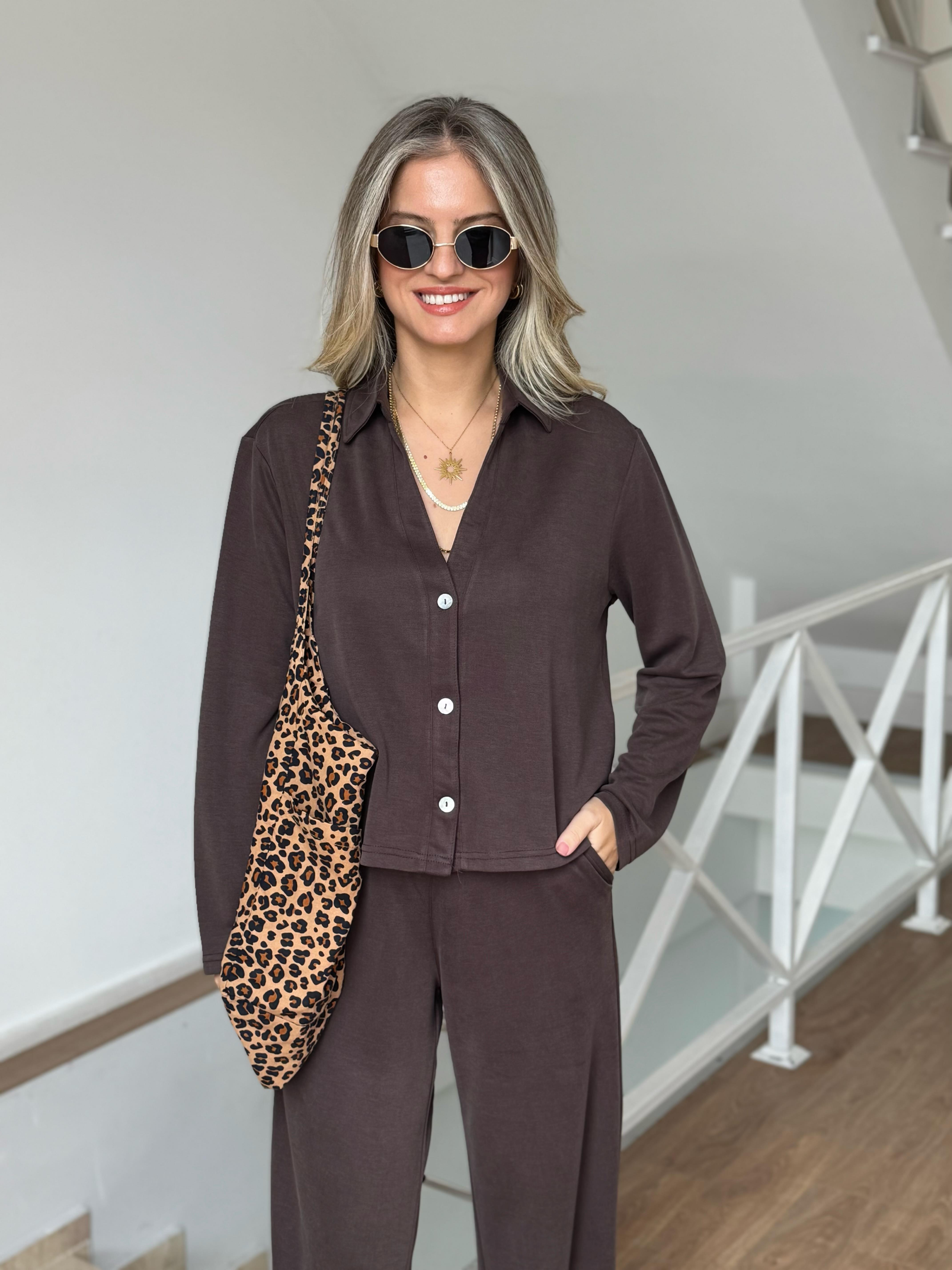 Orijinal Marka Modal Pantolon Gömlek Takım - Kahverengi