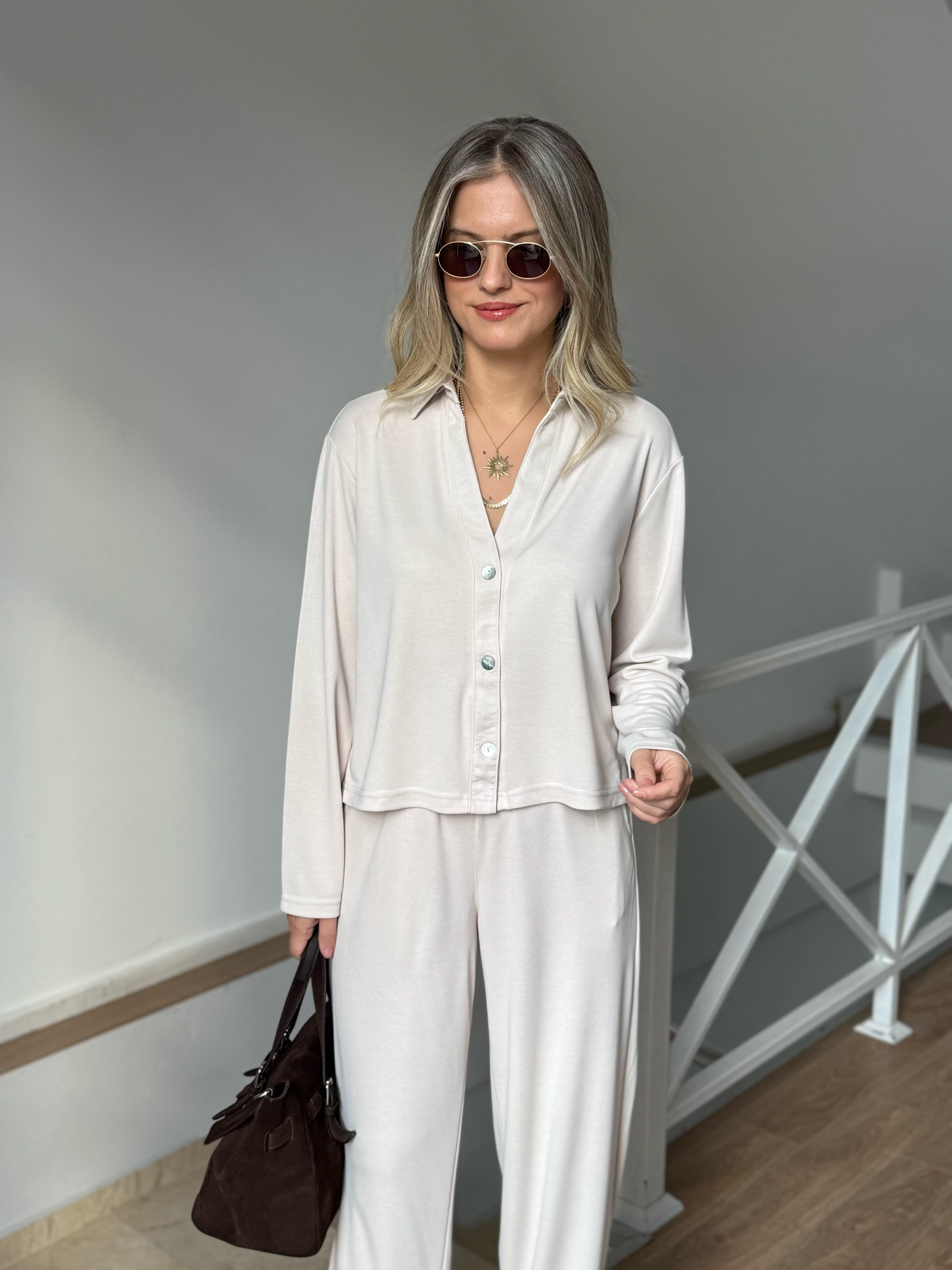Orijinal Marka Modal Pantolon Gömlek Takım - Taş