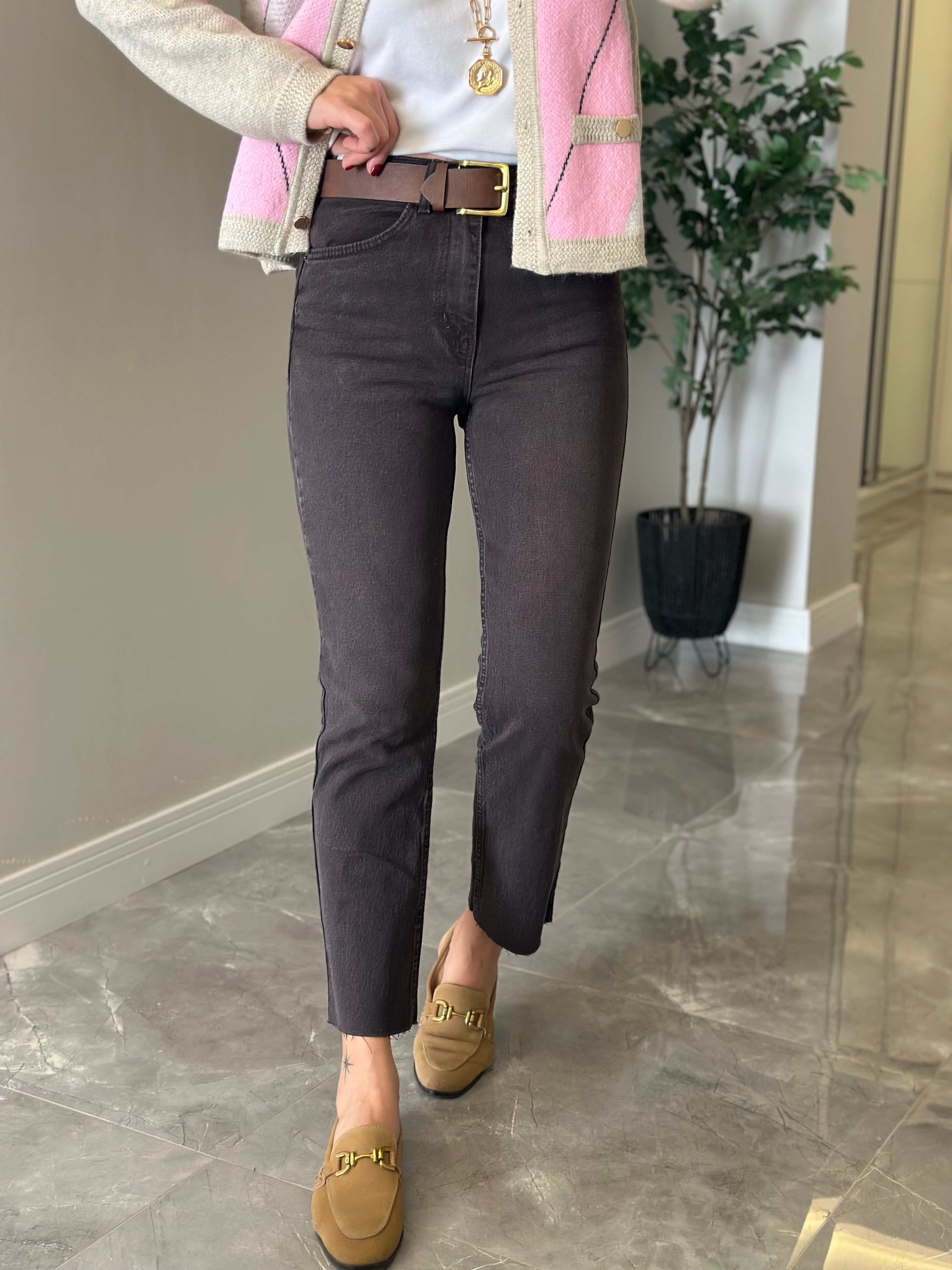 Orijinal Marka Yıkamalı Kesik Paça Jean - Kahverengi