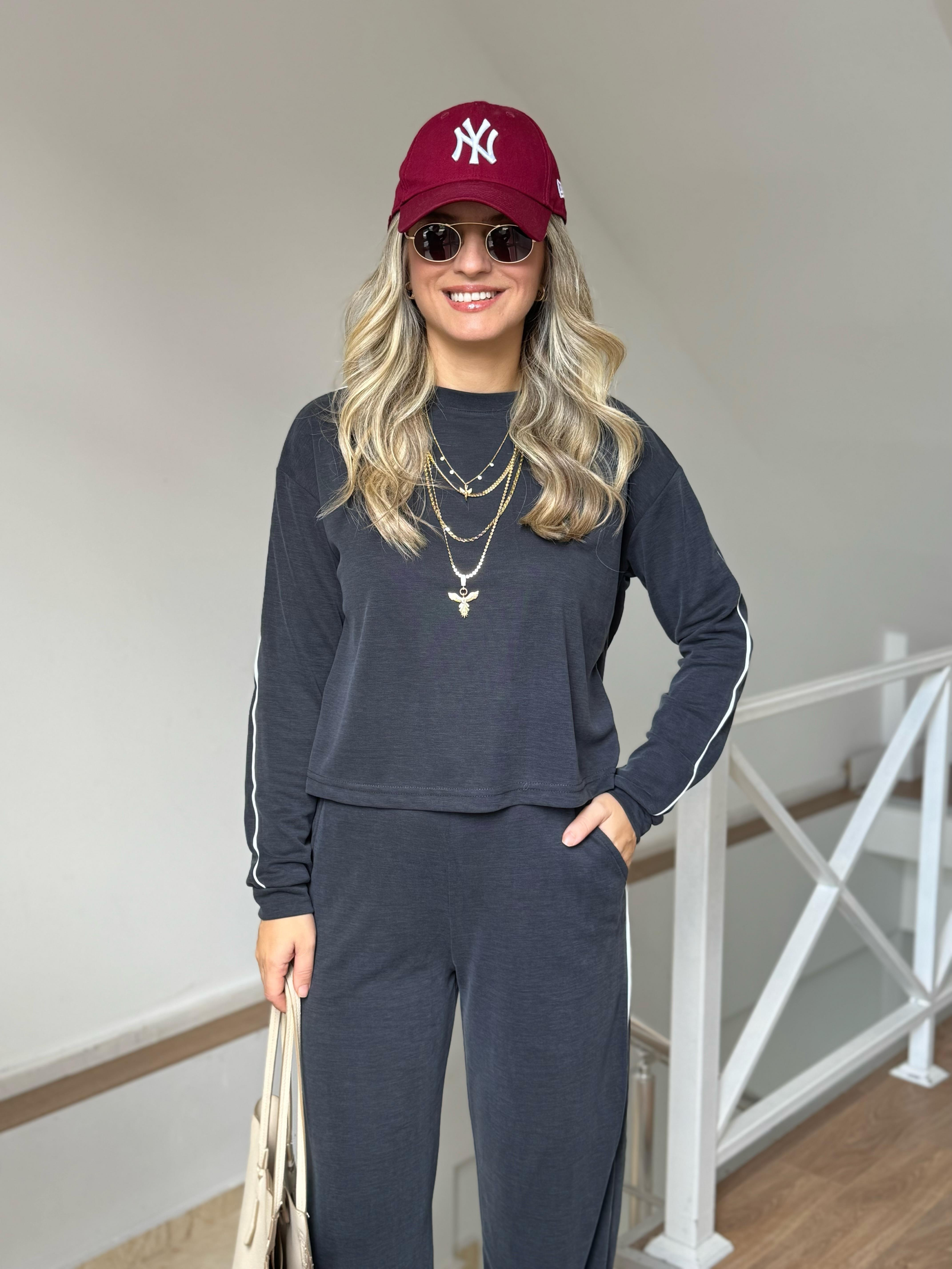 Orjinal Marka Bisiklet Yaka Çizgili Eşofman Takımı - Antrasit