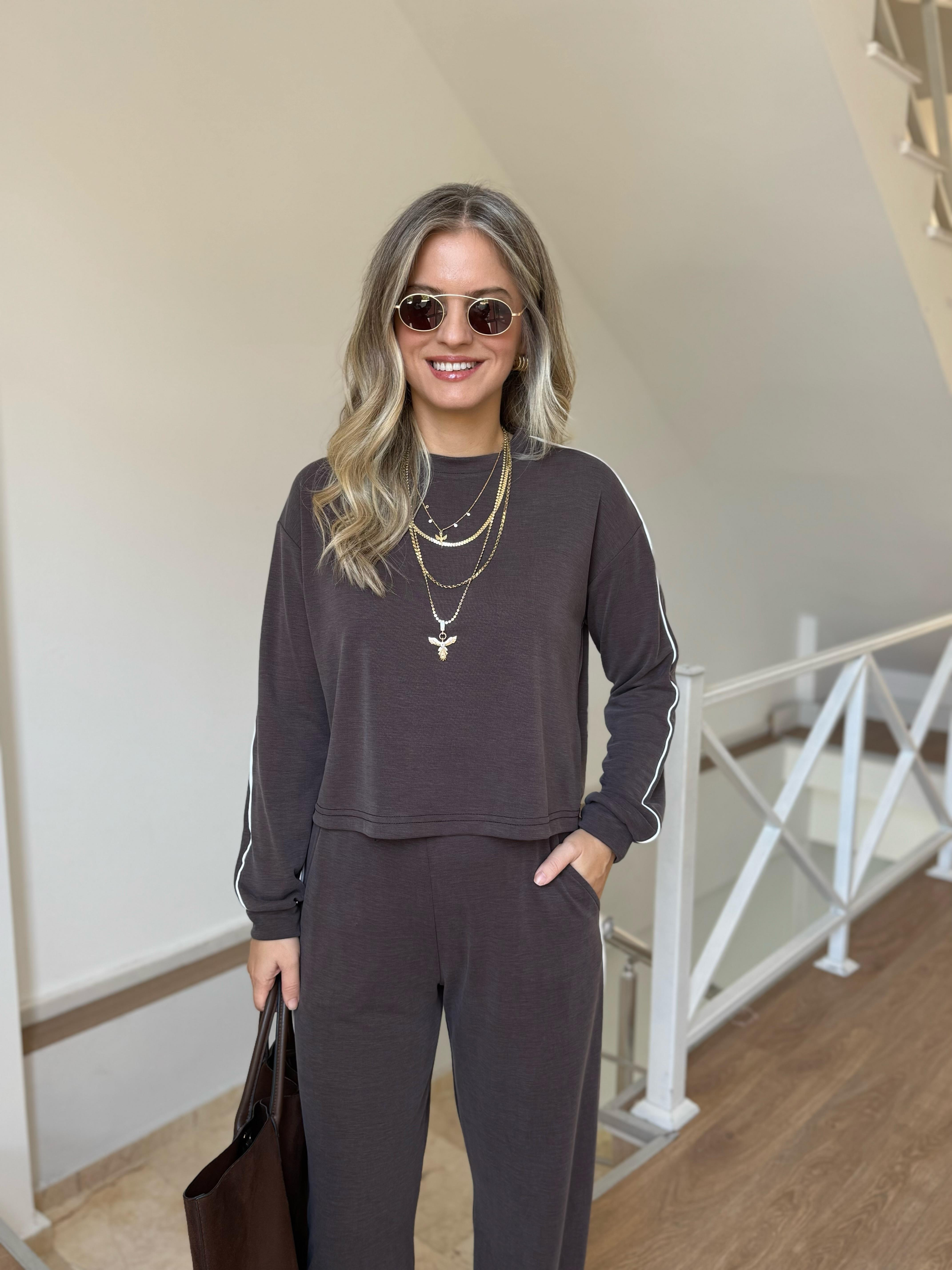 Orjinal Marka Bisiklet Yaka Çizgili Eşofman Takımı - Kahverengi