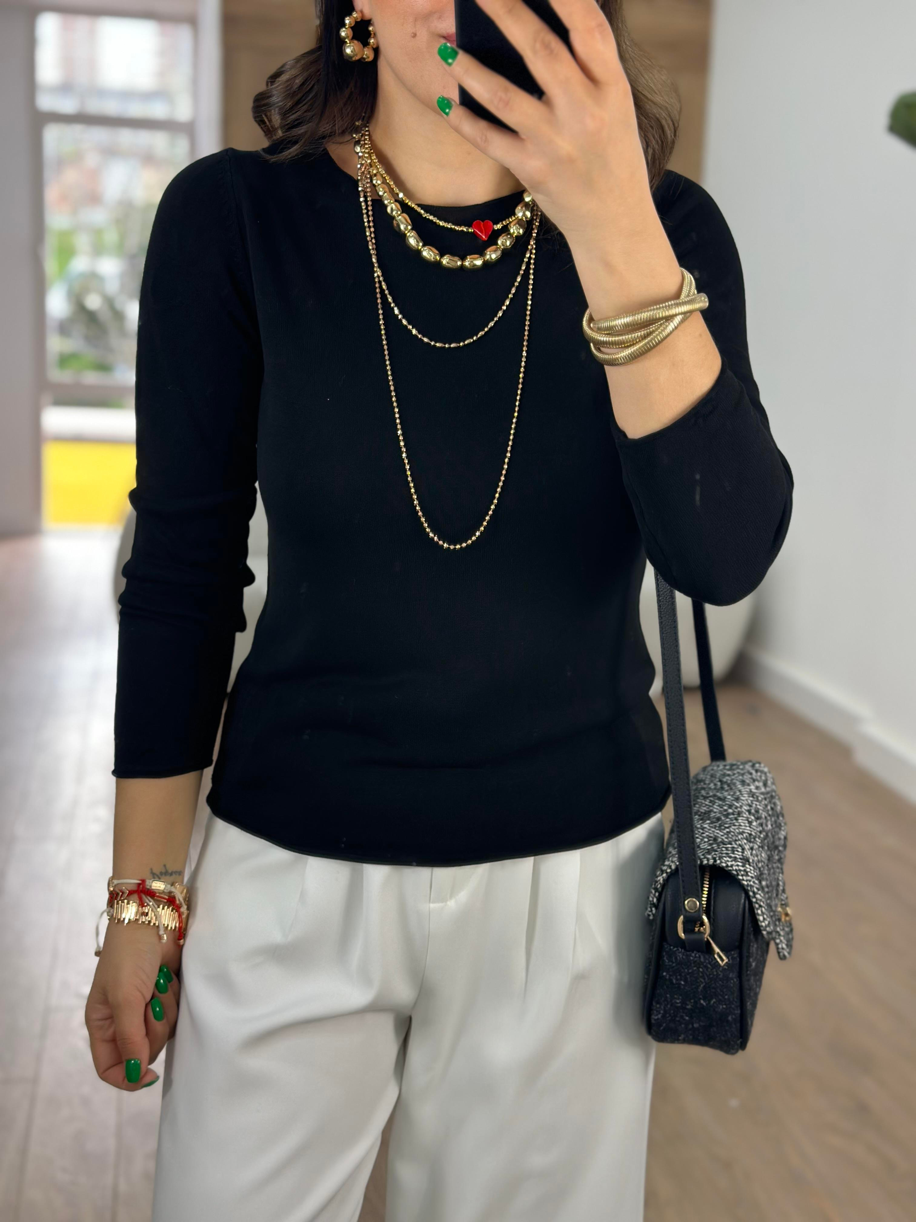 Premium Kalite Bisiklet Yaka Basic Triko-Siyah